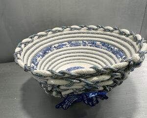 A Stunning Blue and White Rope Basket with an Eye-Catching Qu...