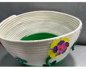 A White Cotton and Green Nylon Rope Basket adorned with Flowe...