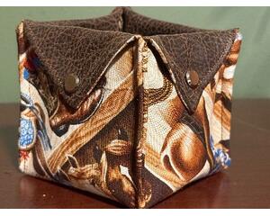 A Quilted Fabric Basket with a Cowboys Flair with Horses, Sad...
